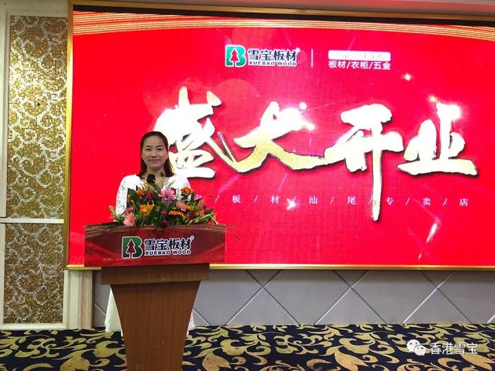▲香港雪宝板材汕尾专卖店施总致辞;